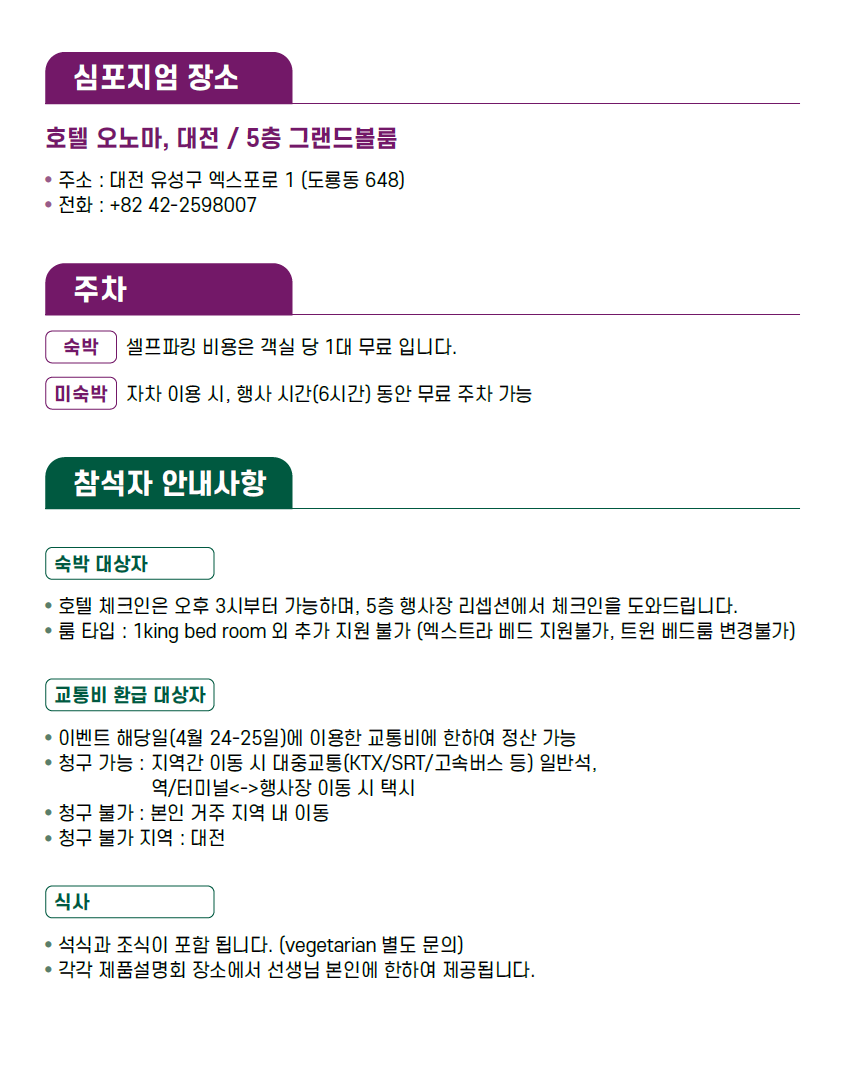 • 장소: 호텔 오노마, 대전 / 5F 그랜드볼륨